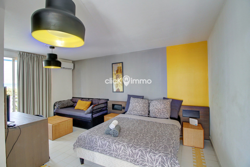 Saint François - Manganao sur la route touristique - Contacter Sybille de CLICK IMMO au 0690 06 33 39 pour visiter ce joli Studio meublé, avec piscine en bord de mer, situé en rez-de-chaussée d'une résidence sécurisée avec parking, composé d'une pièce de vie climatisée, kitchenette équipée, salle d'eau, WC, une agréable terrasse pour le petit déjeuner. Charges incluses. Agence CLICK-IMMO 05 90 04 20 04.